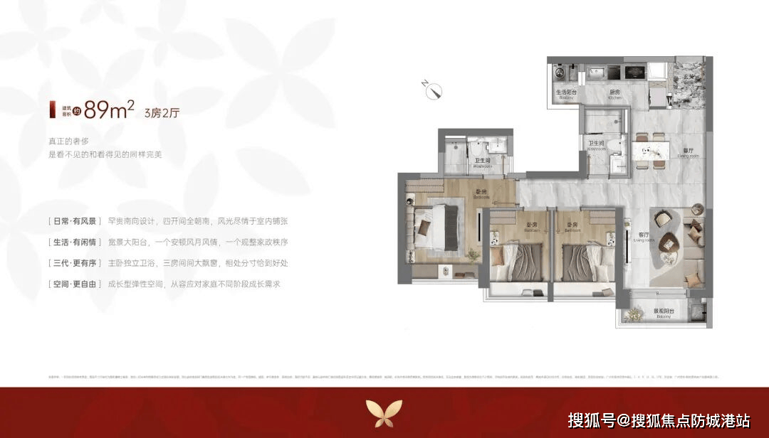 89㎡三房两卫(刚需首选):全南向三开间,确认合同条目:签定《商品房买卖合同》时。
